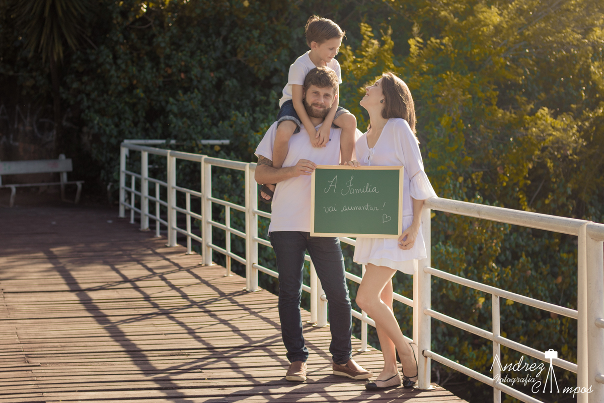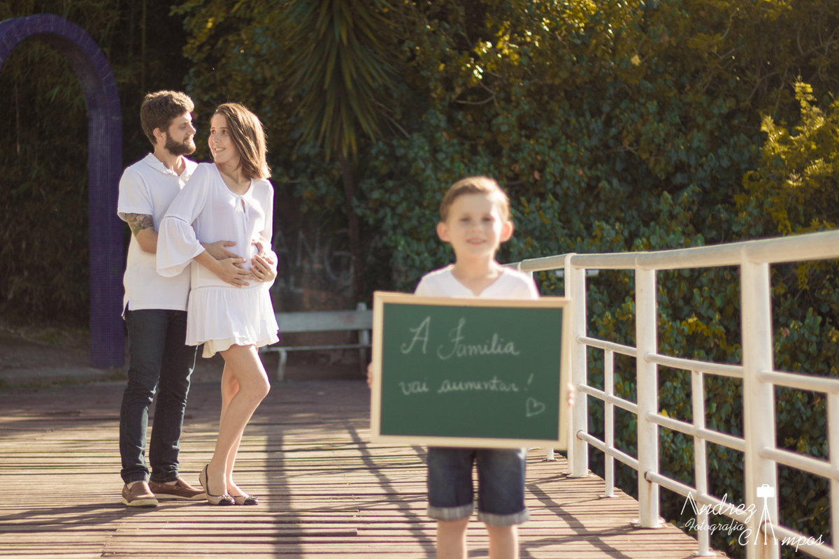 Fizemos as fotos logo no inicio da gravidez, pois, a proposta desse ensaio diferente do tradicional Ensaio de Gestante, é revelar a família que um novo integrante está a caminho.